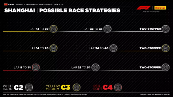 Za očekivati je da će u nedjeljnoj utrci na stazi u Šangaju jako važnu ulogu igrati strategija i čuvanje guma. U nastavku pogledajte koje su gume na raspolaganju vozačima i kakve strategije predviđa Pirelli.